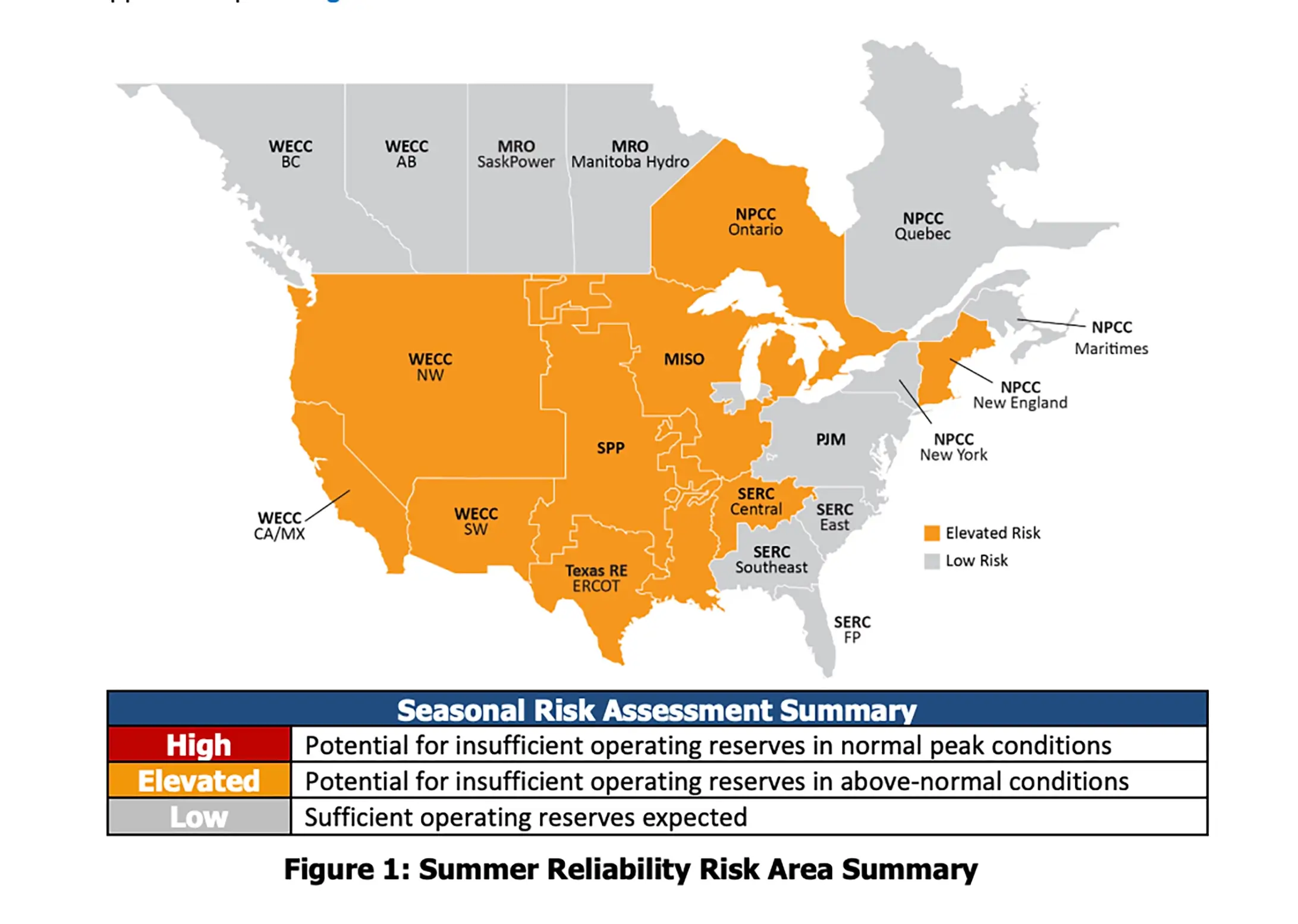 The assessment for June-September notes that “all areas are assessed as having adequate anticipated resources for normal summer peak load and conditions” but that some areas “face risks of electricity supply shortfalls during periods of more extreme summer conditions.”